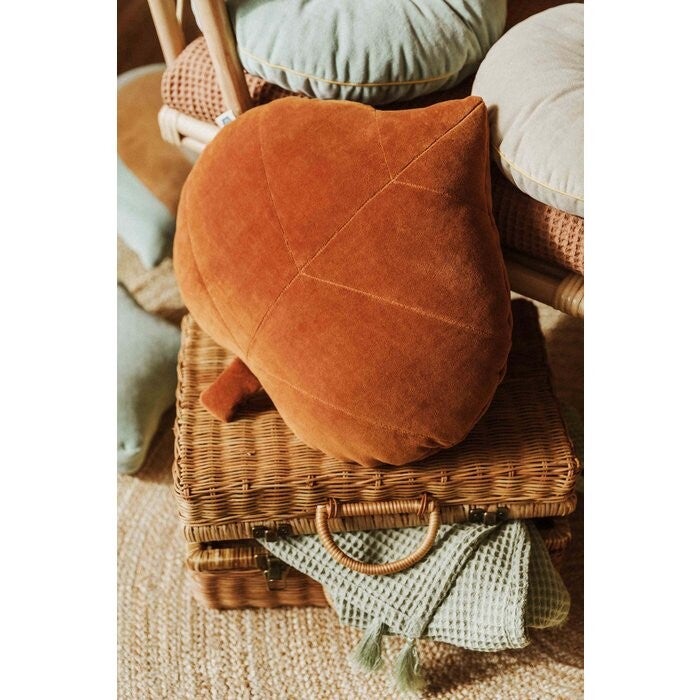 Uniek fluwelen speelgoed, gemaakt van hoogwaardige, milieuvriendelijke materialen die perfect zijn voor de speelkamer van uw kind. Knus bladkussen inspireert tot dagdromen van de volgende familiewandeling in het bos.