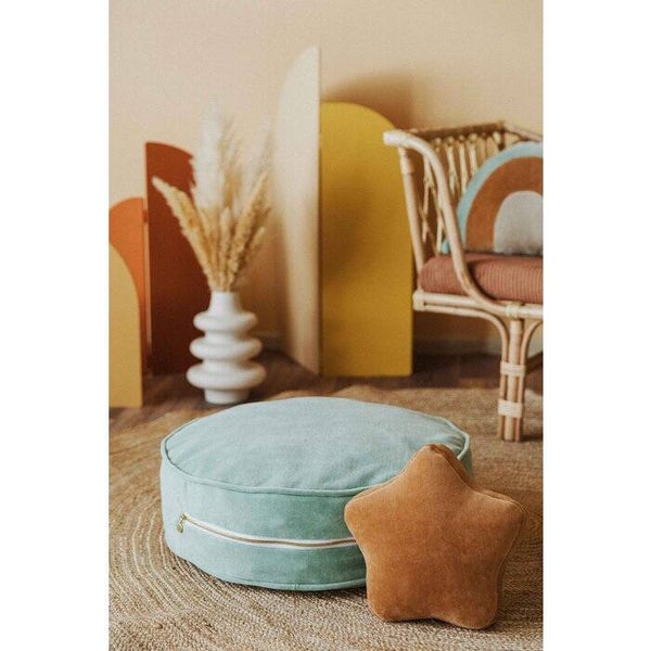 Slimme en stijlvolle, zachte fluwelen ronde poefs - een leuk meubelstuk dat kinderen van kamer naar kamer kunnen meenemen. De gouden rits zorgt voor een luxe finishing touch. Voeg toe aan de kinderkamer of steel hem voor jezelf in de woonkamer.
