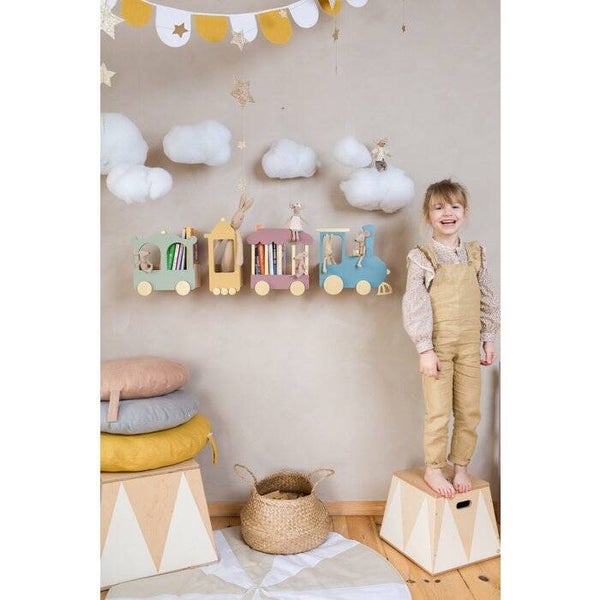 Je kunt de treinplank speelklaar voor je kind ophangen en hem een praktisch en fantasievol meubelstuk geven. Speelgoed dat aan boord gaat van de Express is altijd leuk om op te bergen. Deze trein kan verder gaan dan de slaapkamer van een kind, hij kan ook kinderdagverblijven en wachtkamers bij dokterspraktijken opfleuren, bovendien kun je kinderhoeken in restaurants en cafés intrigerender en charmanter maken. Dashy planken kunnen dienen als winkeldisplays en decoraties.