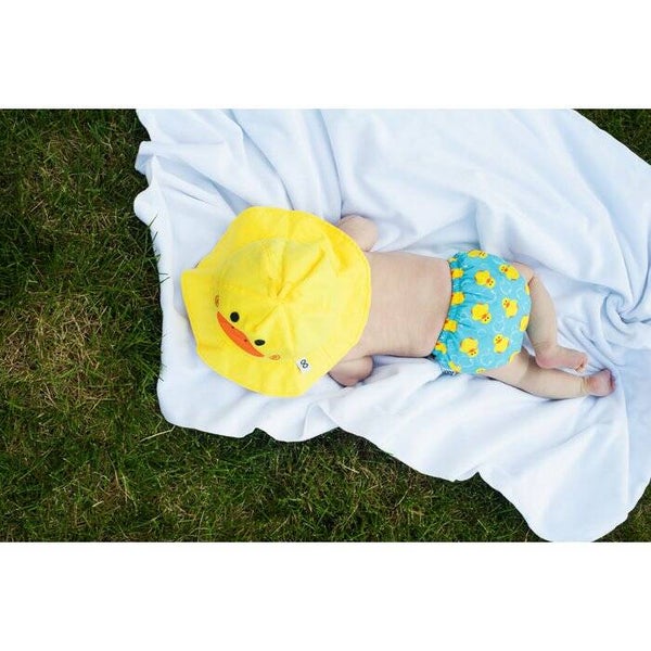 Je kleintje zal er oh-zo leuk uitzien bij het nemen van een duik in de oceaan of het zwembad met deze zwemluier met bijpassend zonnehoedje.
