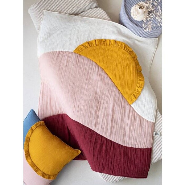 Deze knusse deken is gemaakt van mousseline en heeft een prachtige textuur, heerlijk zacht, lichtgewicht en toch duurzaam. Het heeft een charmante zonsopgangprint die de baby een zachte visuele stimulatie geeft.