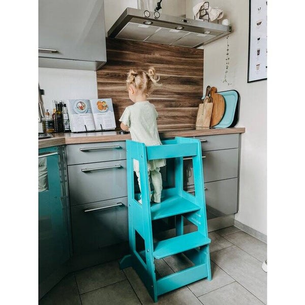 Als praktisch hulpmiddel in het dagelijks leven met een kind biedt de leertoren een bijzonder veilige stand en voldoende bewegingsvrijheid voor kinderen van 1-4 jaar.