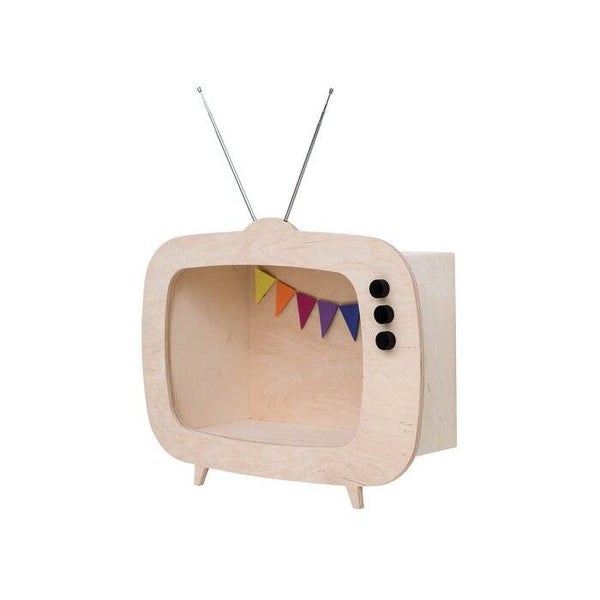 U kunt de "Teevee" altijd bij de hand voor uw kind ophangen en hem een praktisch en leuk meubelstuk geven. Speelgoed en figuren "op tv" zijn altijd leuk om op te bergen. Teevee kan verder gaan dan een kinderkamer, het kan ook kinderdagverblijven en wachtkamers bij dokterspraktijken opfleuren, bovendien kunt u kinderhoeken in restaurants en cafés intrigerender en charmanter maken. Teevee planken kunnen dienen als winkeldisplays en decoraties.