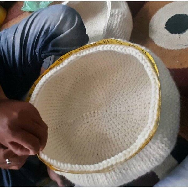 Een duurzame kinderkruk met een wollen off-white bekleding. De hoes is met de hand gehaakt door onze vrouwen in Kathmandu en de houten kruk is gemaakt in Nederland. Hoes wordt geleverd met kinderkruk.