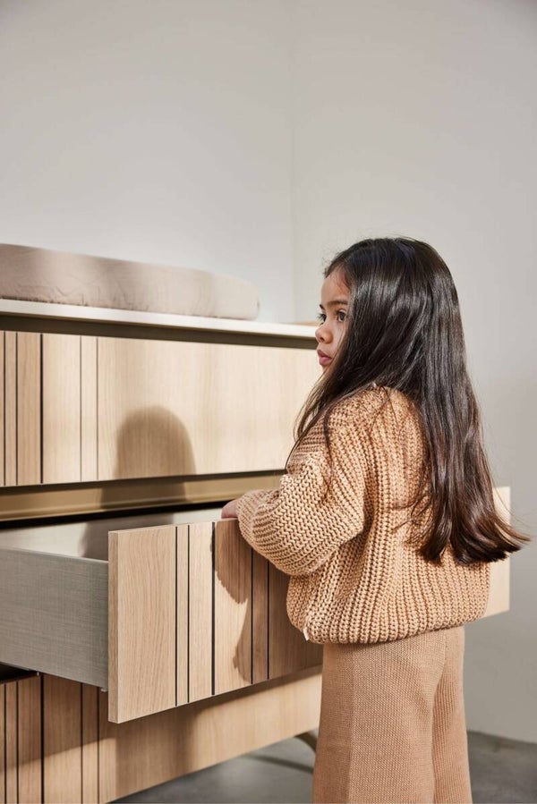 Praktisch, stijlvol en perfect voor de moderne babykamer, onze commode is een mooi meubel dat past in elk interieur. De commode heeft drie opberglades met een handige grepen en soft-close sluiting. Daarnaast heeft het een kleine opstaande rand zodat je babyspullen er niet snel vanaf vallen. Extra comfort en veilig dus.
