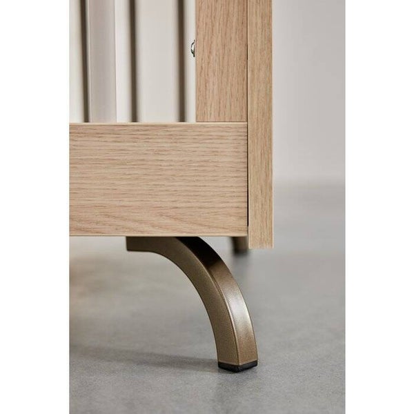 Voor de stijlvolle babykamer, ons ledikant hout is geïnspireerd op de Wabisabi en Japandi stijl dat past in elk interieur. De ovaalvormige spijlen in combinatie met de typische zwarte Frendly lijnen geven het houten ledikant een vriendelijk en stoer karakter. De bedbodem is eenvoudig te fixeren in een hoge of lage stand.